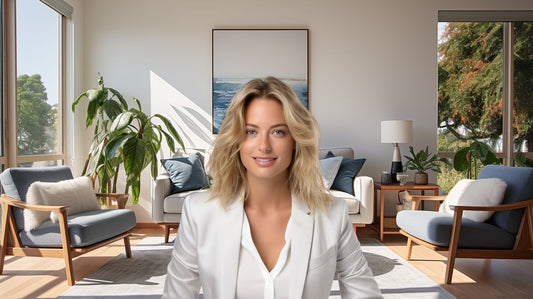Bright and Cozy Modern Living Oasis in Blue & White - Virtual Background Image for Zoom and Teams Meetings